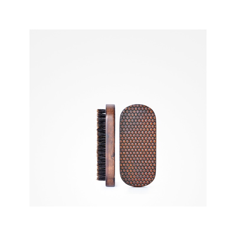 Nº 7 Cepillo Ovalado Mino. 5 hileras de cerdas y una longitud de 8,5 CM. Para el cepillado de barba y bigote. Ideal para viaje.