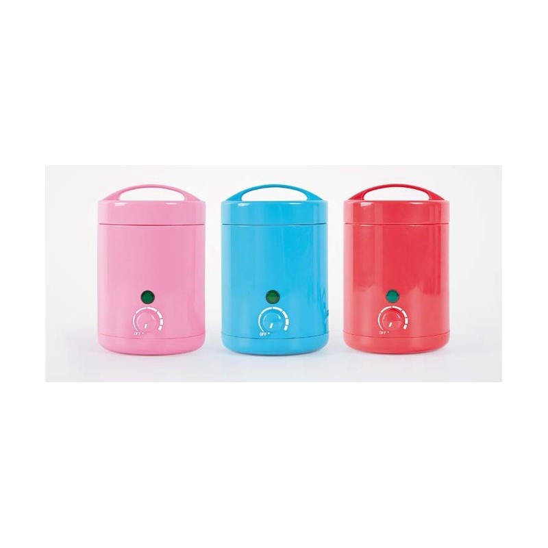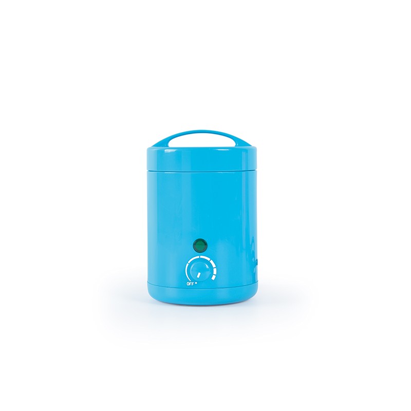 Pequeño, práctico y rápido calentador de cera, con capacidad máxima para 300 gramos de producto. Incluye un termostato regulador electrónico de temperatura.