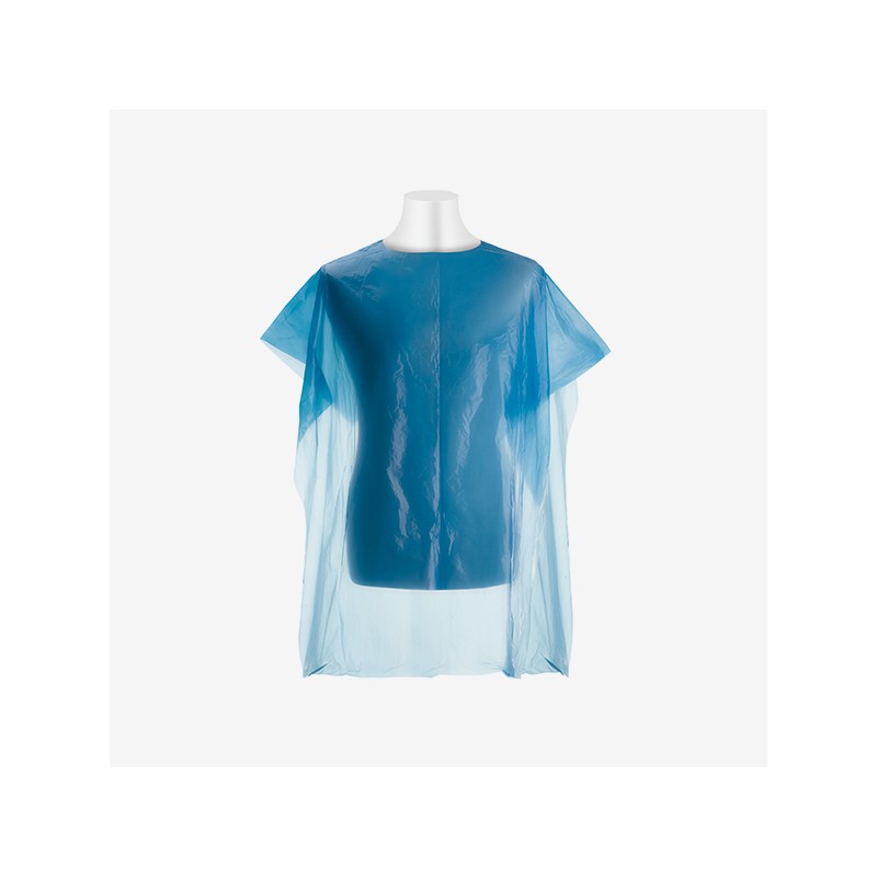 Pack 100 Unidades Capas Desechables Polietileno Azul Bifull 84 x 110 cm. Polietileno con cierre de Lazo. Medidas 84 cm ancho x 110 cm largo