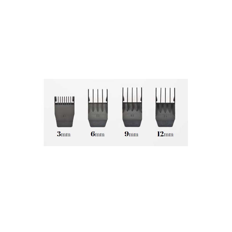 Máquina de corte profesional de diseño metálico efecto espejo con cuchillas ajustable de acero inoxidable de gran durabilidad, para un corte suave y preciso. Disponible también Pack de peines de 3mm, 6mm, 10mm, 13mm, 16mm y 19mm.
