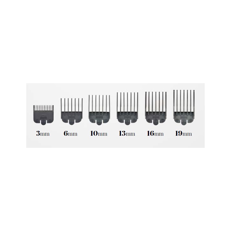 Máquina de corte profesional, con motor oscilante de alto rendimiento, silencioso y potente. Cuchillas de acero inoxidable de gran durabilidad. Corta el cabello con facilidad para obtener resultados rápidos. Su palanca lateral con 5 posiciones de corte fijas, más sus 6 peines proporcionan un total de 11 longitudes de corte diferentes, para una mayor precisión.
