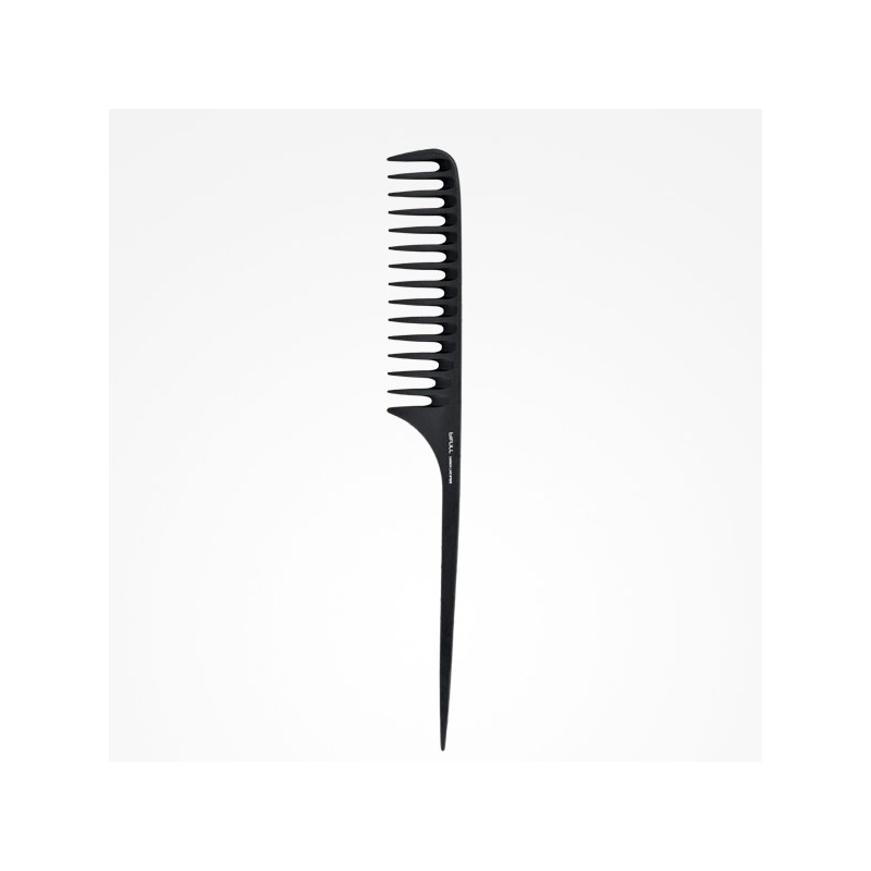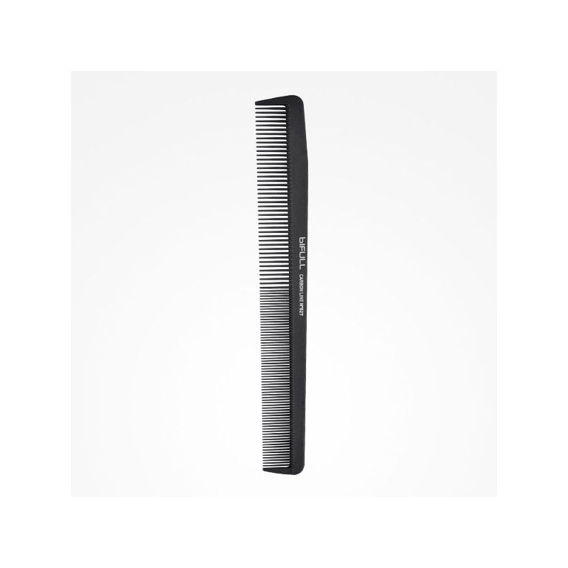 Peine antiestático fabricado en carbono ultrarresistente al calor del secador y a los agentes químicos como tintes, permanentes, decoloraciones… Su material de alta calidad permite su manejo sin riesgo de rotura. La fibra de carbono de la que están compuestos alcanza una resistencia y solidez excepcional. Pueden trabajar con plancha y se pueden esterilizar. Son muy ligeros y agradables de utilizar, gracias a su excelente pulido penetra con gran facilidad sin dañar el cuero cabelludo, lo que facilita el trabajo del estilista. Sobrios y elegantes con una gran variedad de modelos.