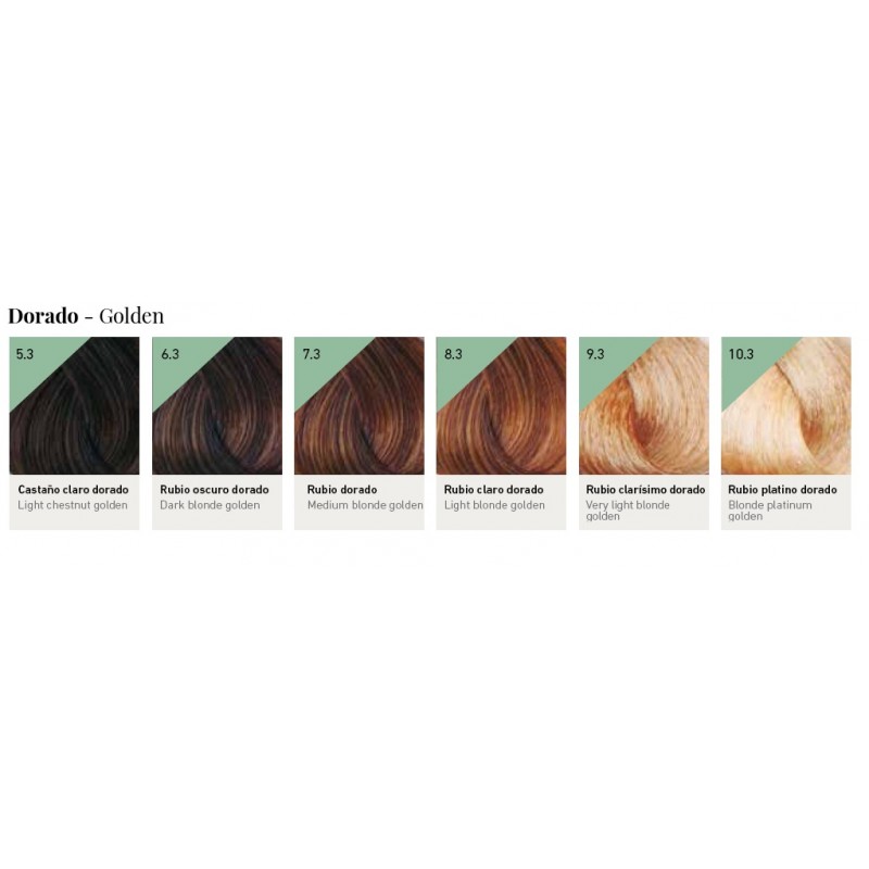 Crema colorante a base de aceite de argán y aloe vera, con unos pigmentos de gran calidad, garantiza brillo, suavidad, luminosidad, hidratación, cobertura y durabilidad. Tonos Dorado del Tinte Cromic Light Irridiance 100ml. 4.3, 5.3, 6.3, 7.3, 8.3 y 9.3.