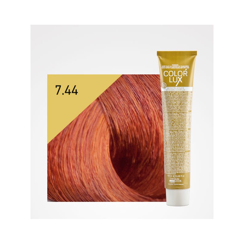 Tono Cobre Intenso Crema Colorante Color Lux Design Look 5.44, 6.44, 7.44 y 8.44.