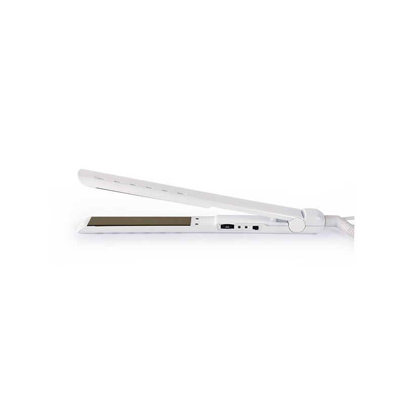 Con tecnología iónica de última generación y una placa de nano titanio espejo, esta plancha alcanza altas temperaturas de hasta 250 ˚C