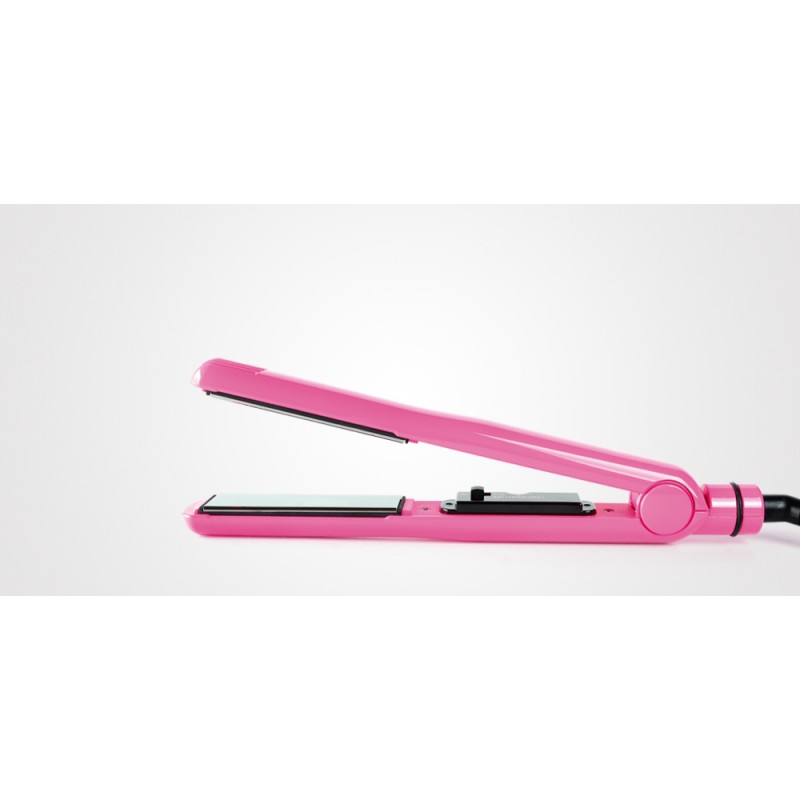 Plancha profesional con sistema de placas de titanio en suspensión. Ajuste perfecto y deslizamiento suave para conseguir resultados inmejorables en una pasada. Disponible en Rosa, Azul y Negra.