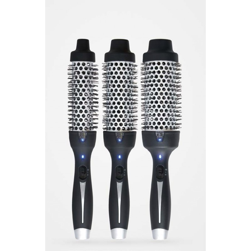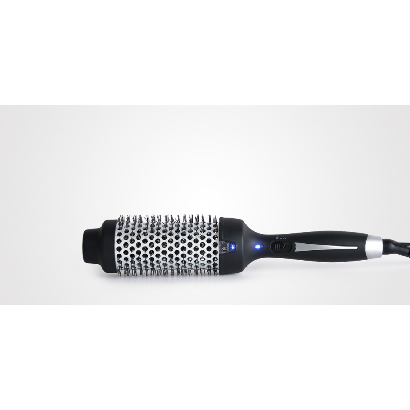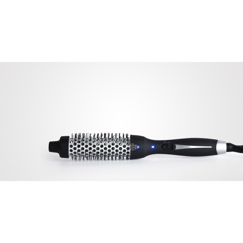 Revolucionario cepillo eléctrico redondo con tecnología iónica. Libera una gran cantidad de iones que controlan la humedad del cabello a la vez que evitan el encrespado, proporcionando un acabado suave y brillante. Su forma redonda permite alisar y realizar ondas profesionales fácilmente. Cómodo y práctico, con punta fría para una sujeción segura.