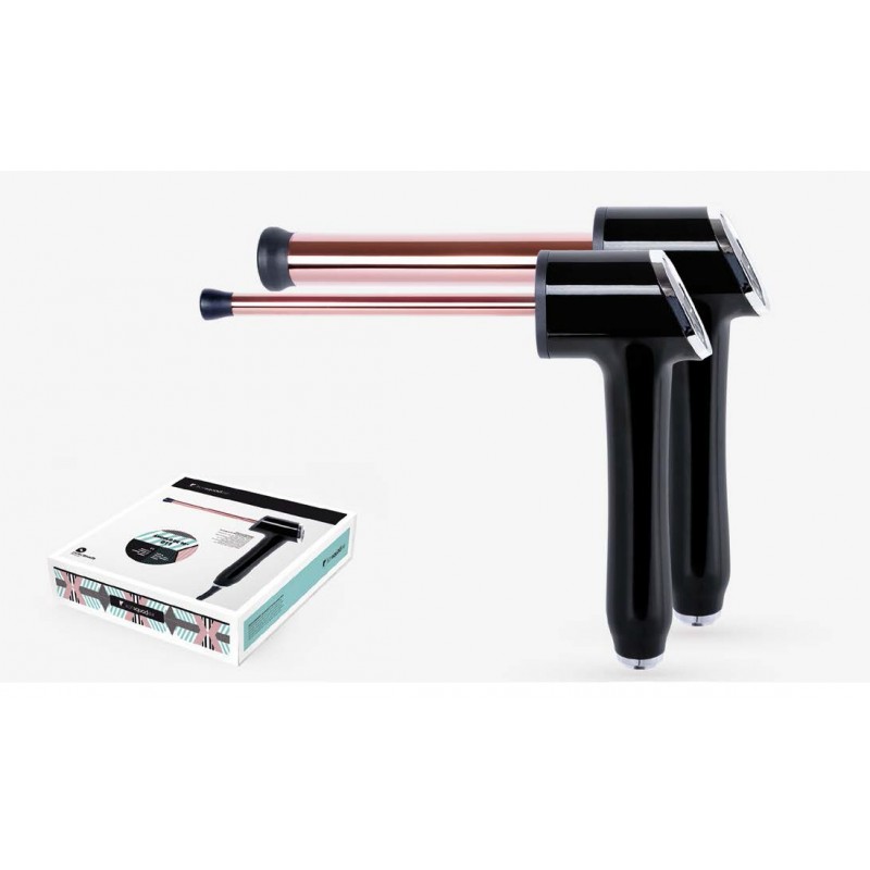 Con mango revolucionario en ángulo de 90º, hace el trabajo más fácil, cómodo y rápido, permite una mejora importante en cuanto a su uso profesional reduciendo la tensión en hombro, codo y muñeca. Sus calentadores PTC proporcionan un calentamiento súper rápido y un calor constante, y su tecnología de titanio son ideales para crear unos rizos perfectos al instante. Como resultado rizos y ondas duraderas realizadas de forma fácil y rápida. Voltaje: 110-240V~. Frecuencia: 50 / 60Hz. Elemento calefactor PTC. Revestimiento de titanio. Pantalla digital. Temperatura ajustable: 120-230ºC. Cable de 3m. Apagado automático: 60min. Peso: 184gr.